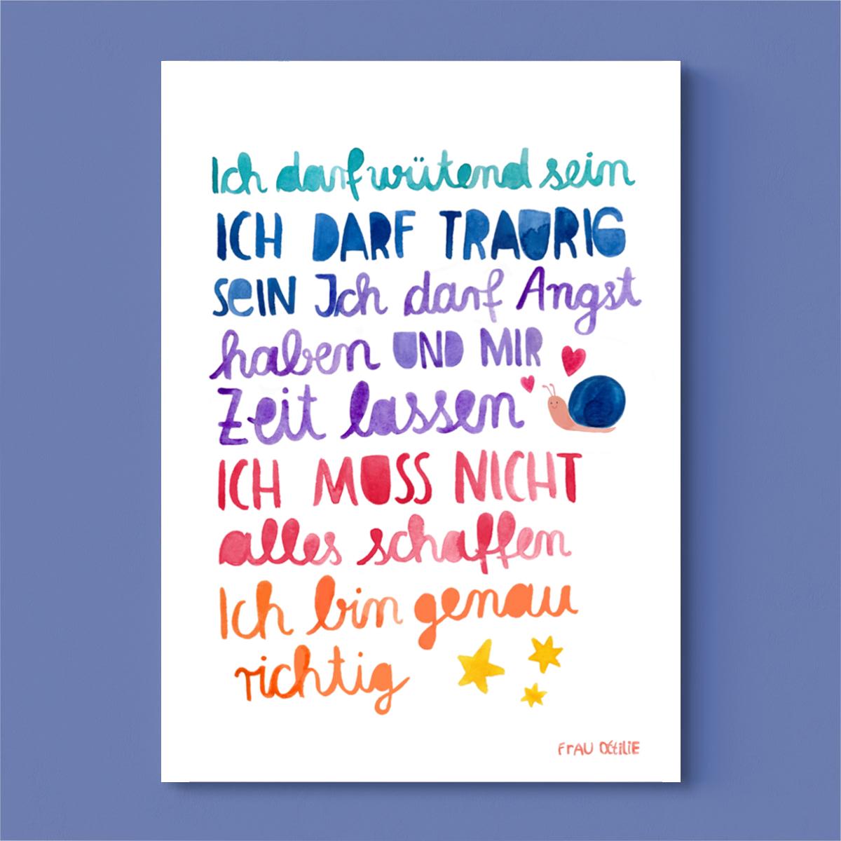 "Ich darf wütend sein. Ich darf traurig sein. Ich darf Angst haben und mir Zeit lassen. Ich muss nicht alles schaffen. Ich bin genau richtig."